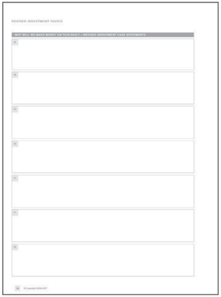 Use these pages to develop distinct work streams for each individual investment case statement – and to track results, actions, and revisions to the provisional thesis